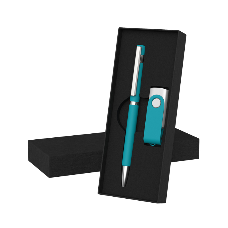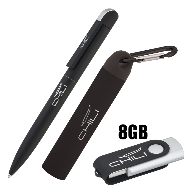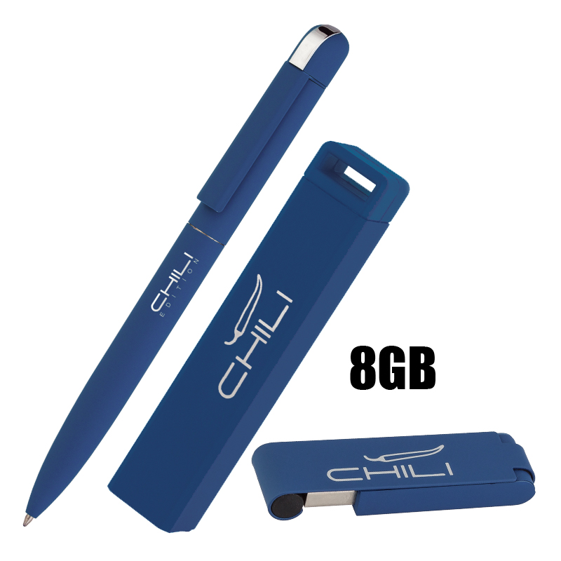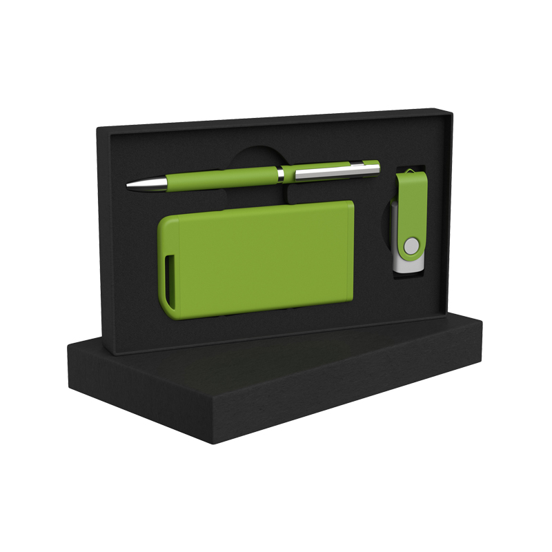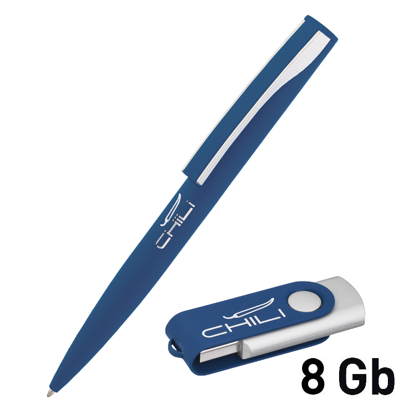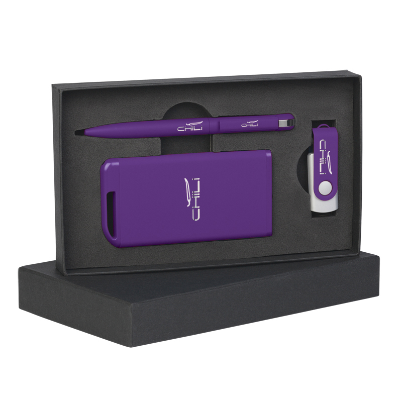 Набор ручка + флеш-карта 8Гб + зарядное устройство 2800 mAh в футляре, покрытие soft touch