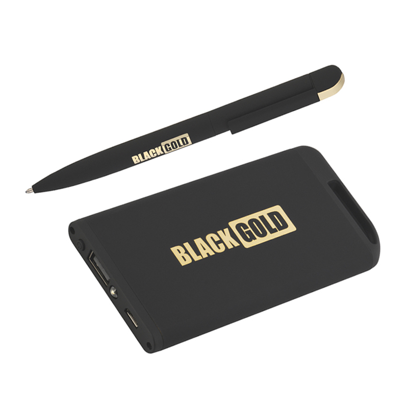 Набор ручка + зарядное устройство 4000 mAh в футляре, покрытие soft touch
