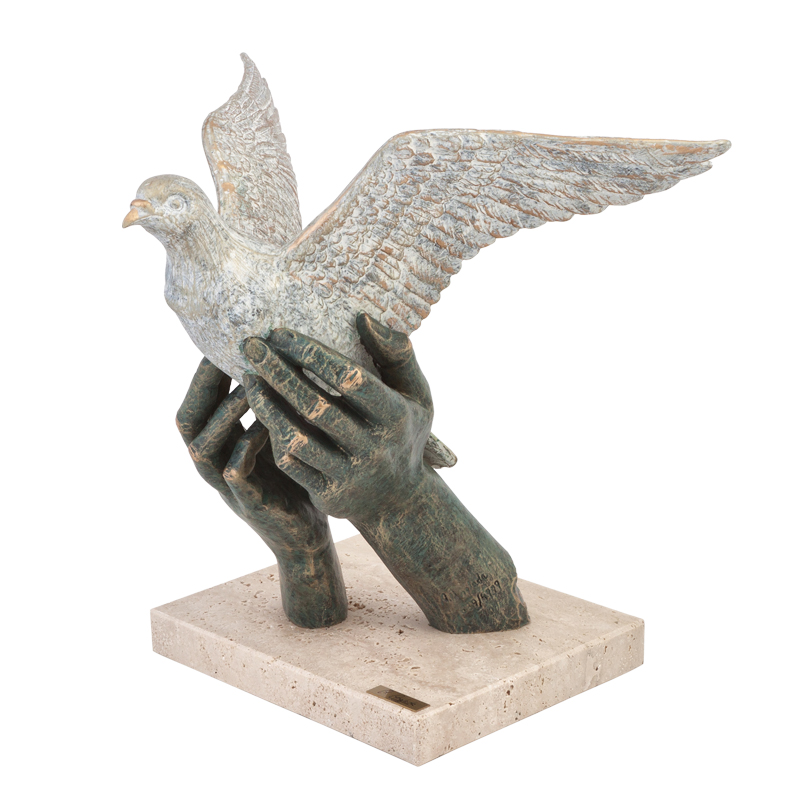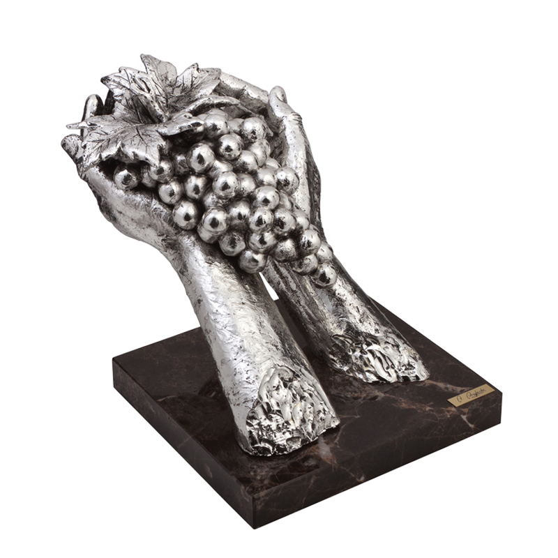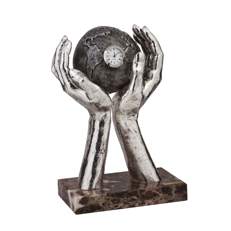 Скульптура с часами "Мир в твоих руках", посеребрение