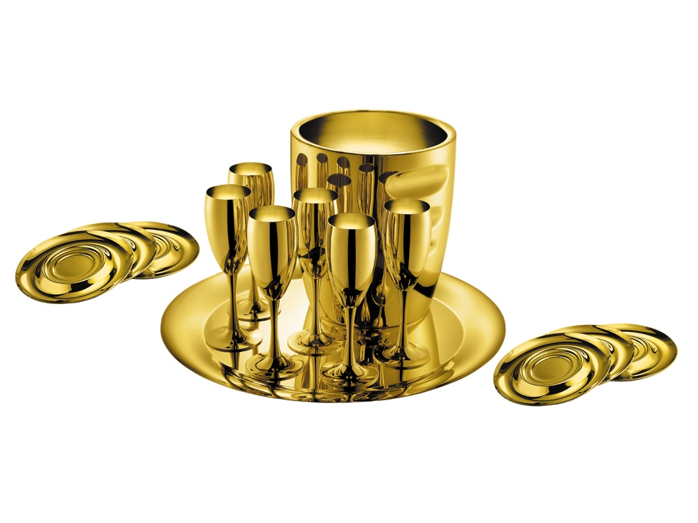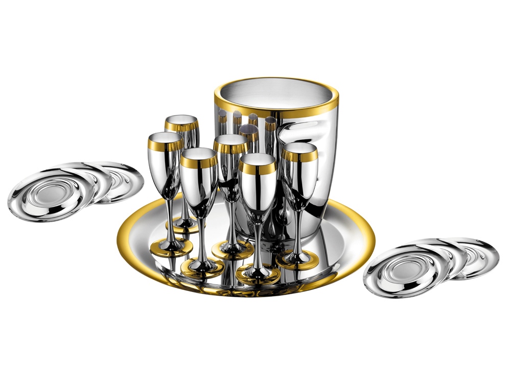 Набор для шампанского «Ла Перле» на 6 персон стальной с золотым декором. ZEPTER