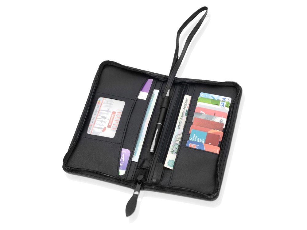 Портмоне дорожное с отделениями для авиабилетов и кредитных карт с наручным ремешком на молнии